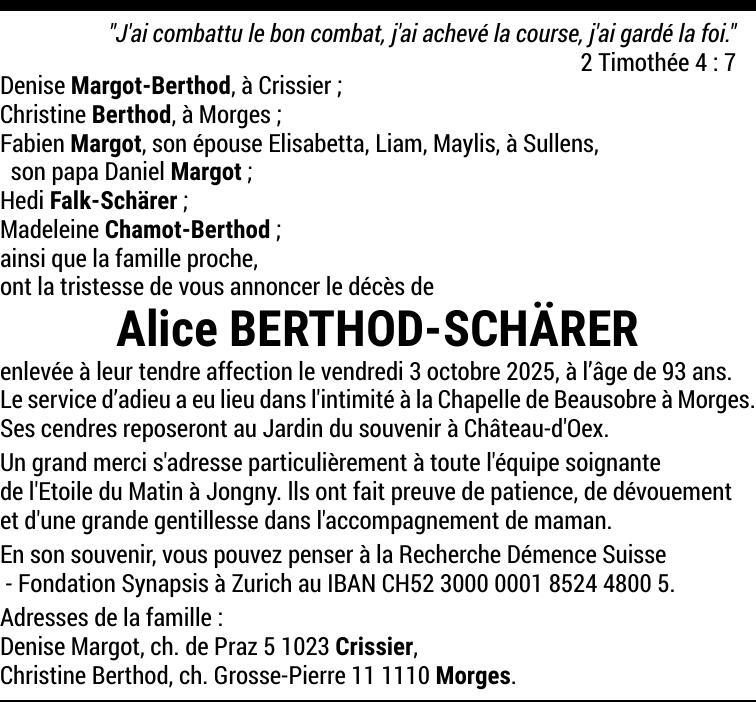 Madame Alice BERTHOD-SCHÄRER