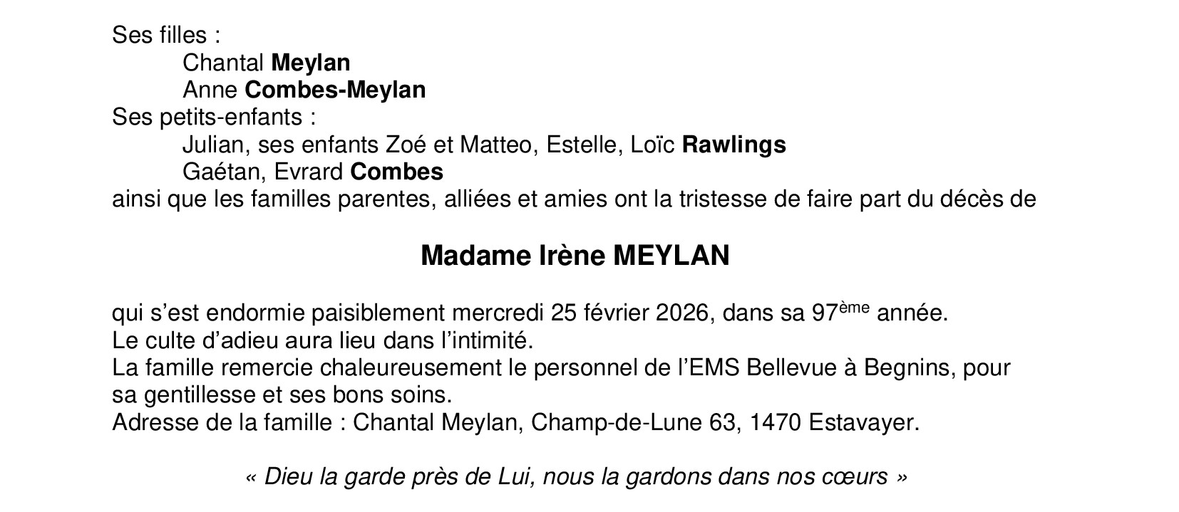 Madame Irène MEYLAN