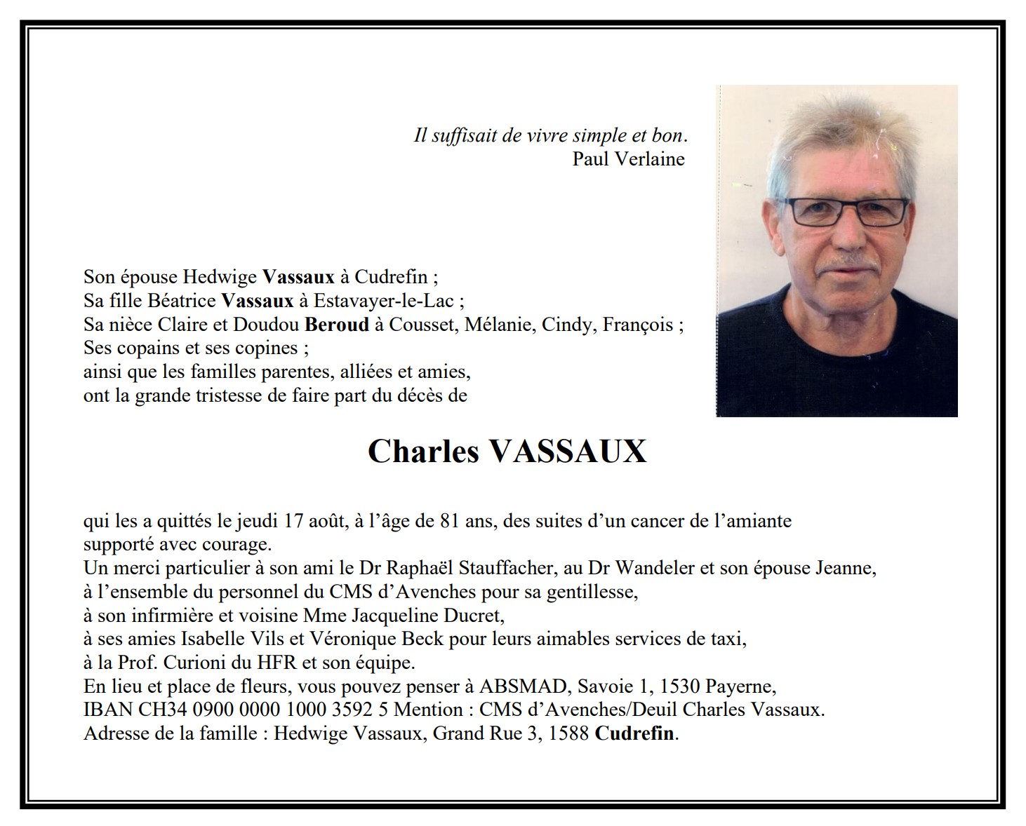 Charles VASSAUX 24 juil. 1942 - 17 aoû. 2023 Avis mortuaire PFG Télecharger PDF Partager sur: Galerie