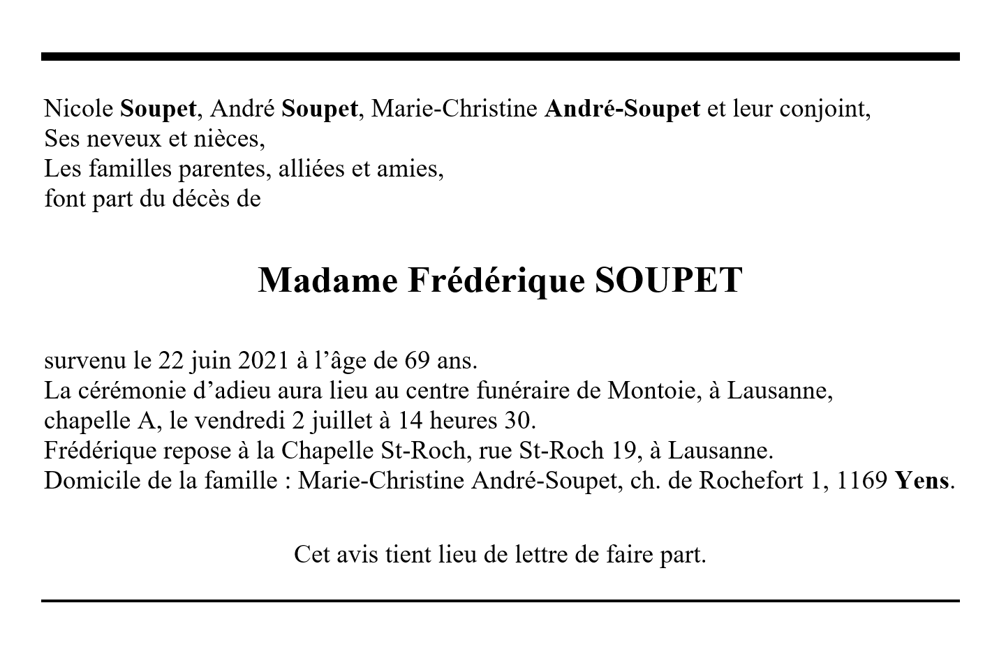 Avis mortuaire PFG