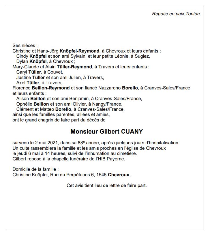 Avis mortuaire PFG