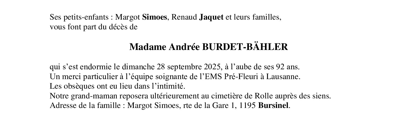Madame Andrée BURDET-BÄHLER
