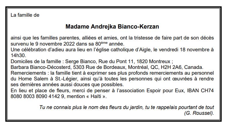 Embedded thumbnail for Madame Andrejka Bianco-Kerzan > Galerie > Video or Image