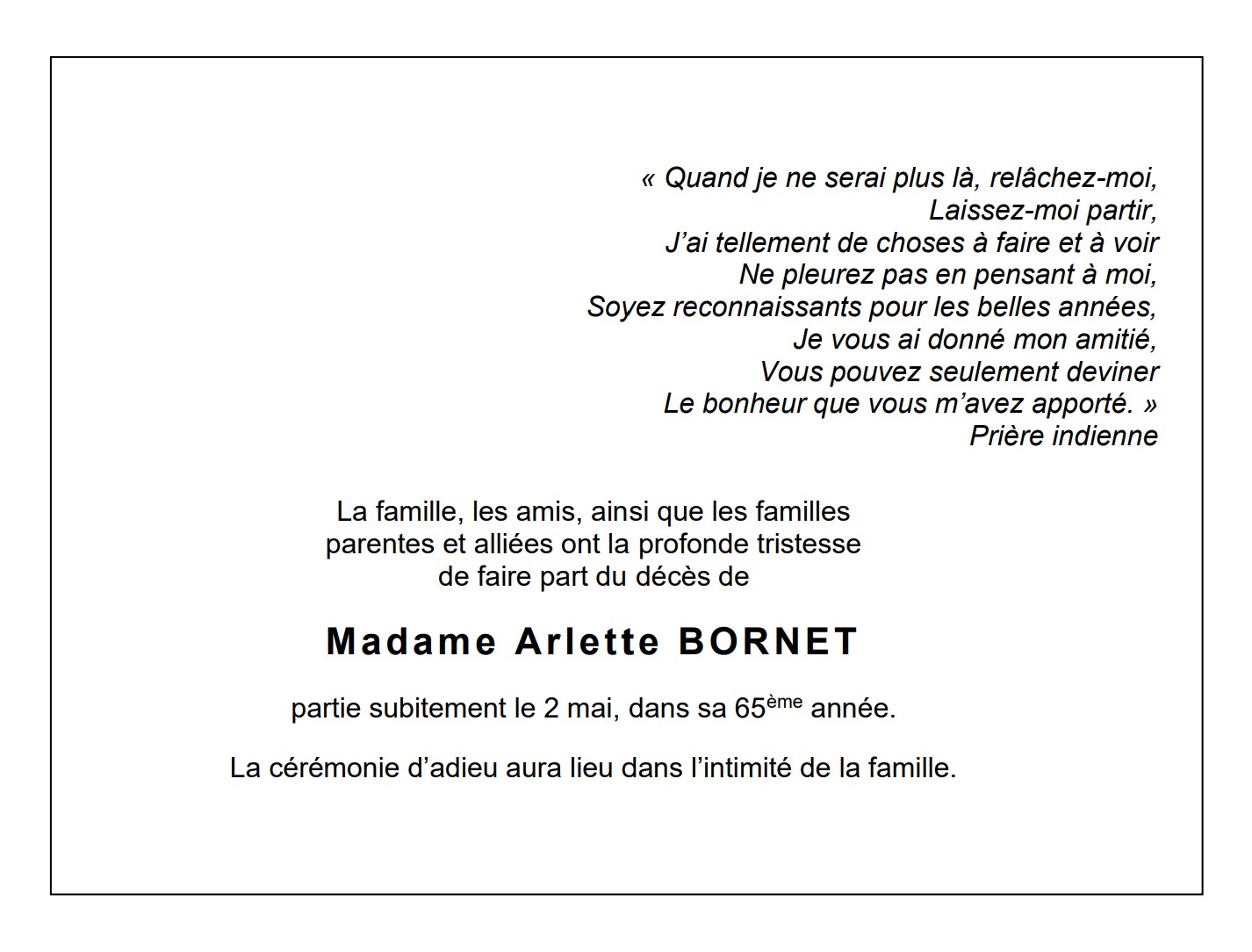 Madame Arlette BORNET