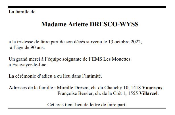 Embedded thumbnail for Madame Arlette DRESCO-WYSS > Galerie > Video or Image