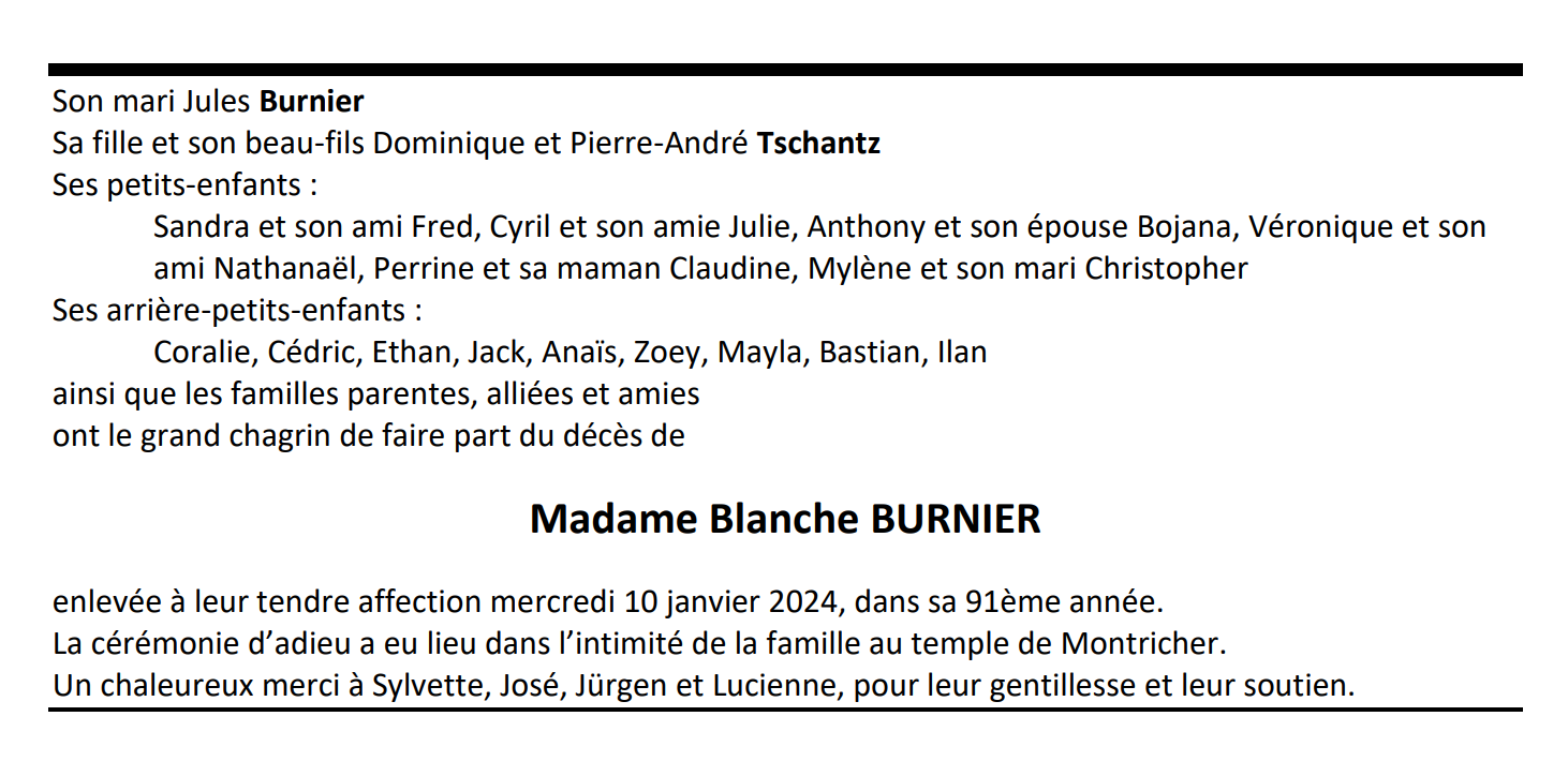 Madame Blanche BURNIER