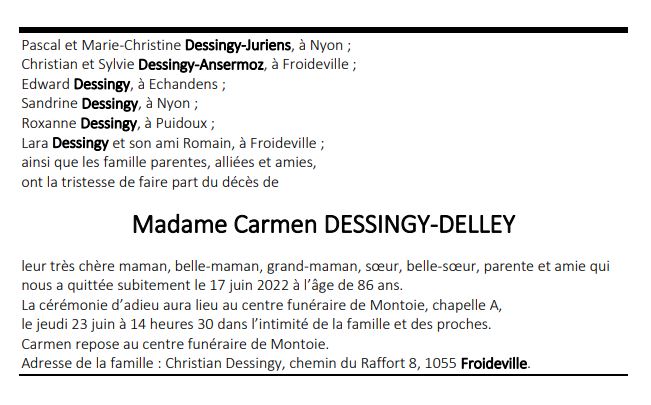 Madame Carmen DESSINGY-DELLEY