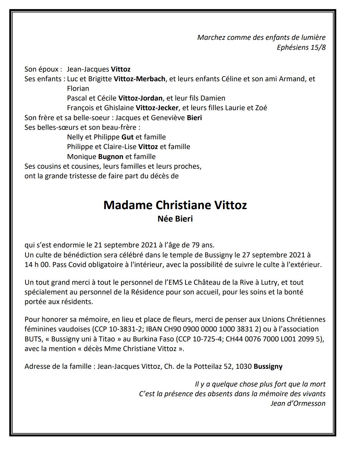 Madame Christiane Vittoz