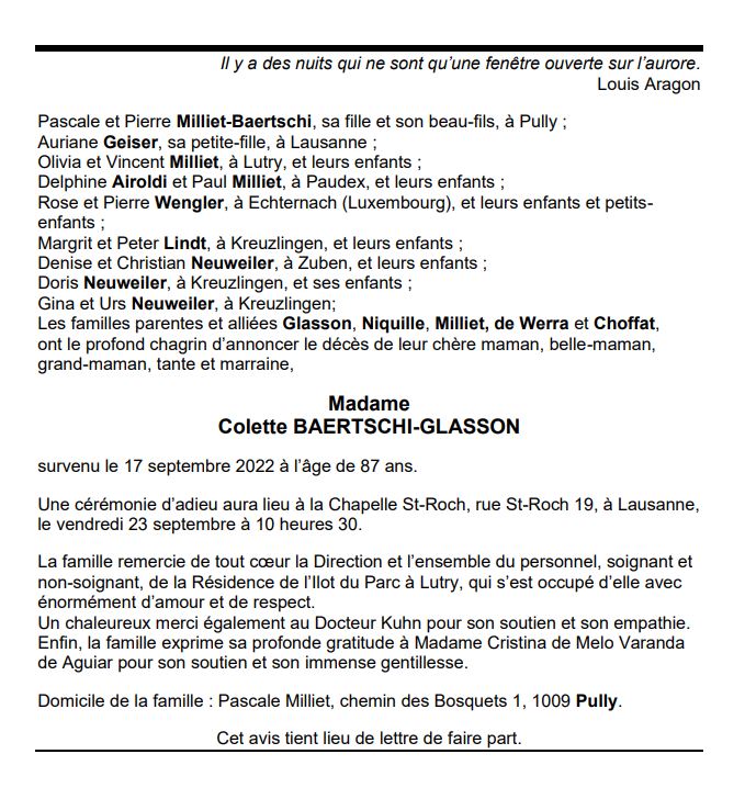 Madame Colette BAERTSCHI-GLASSON