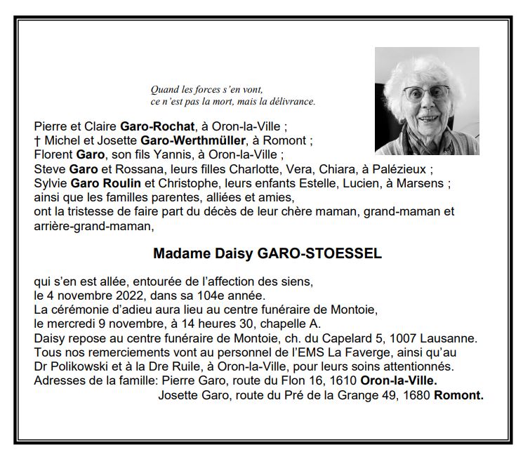Madame Daisy GARO-STOESSEL
