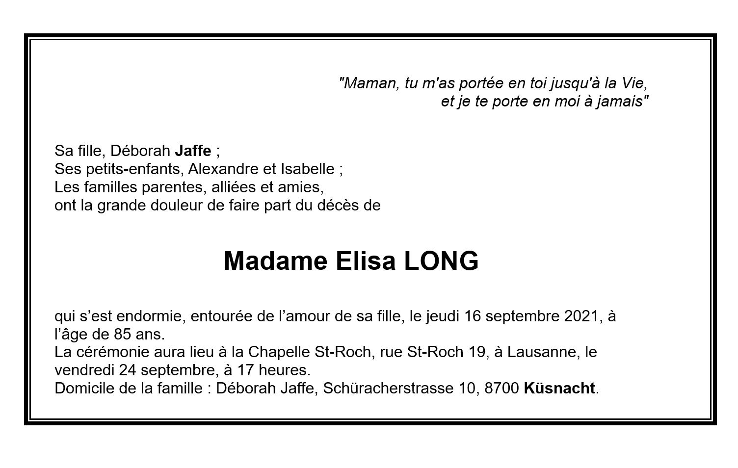 Madame Elisa LONG