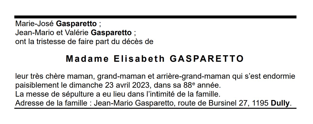 Madame Elisabeth GASPARETTO