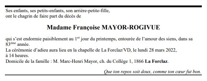 Madame Françoise MAYOR-ROGIVUE