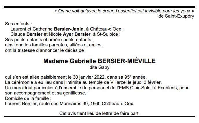 Madame Gabrielle BERSIER-MIÉVILLE