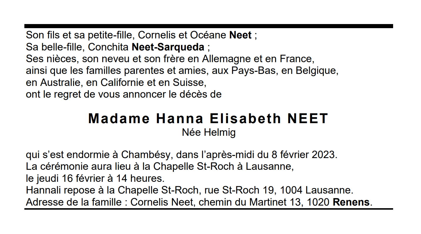 Madame Hanna Elisabeth NEET