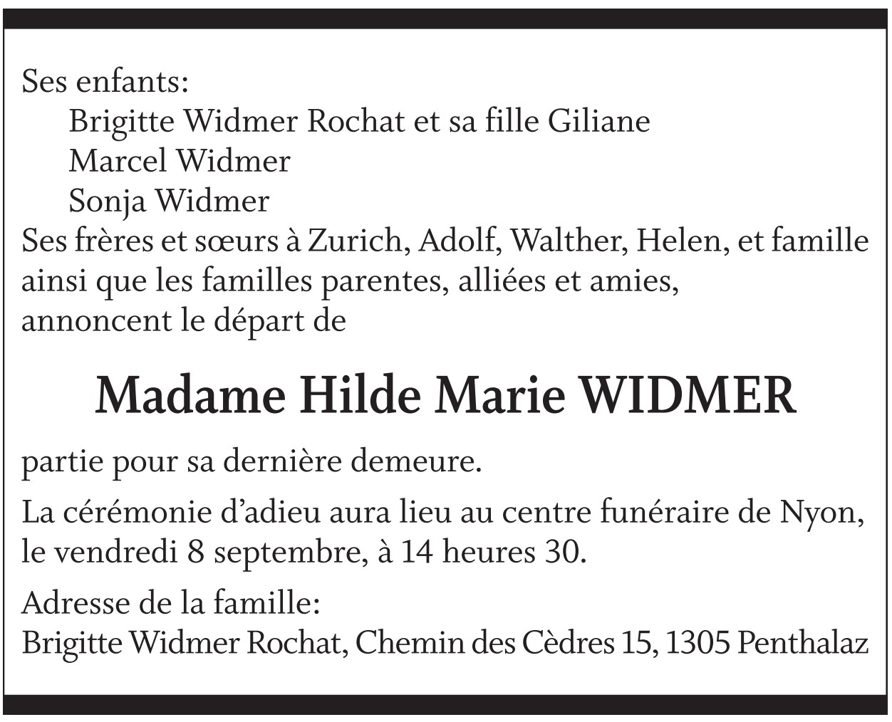 Madame Hilde Marie WIDMER