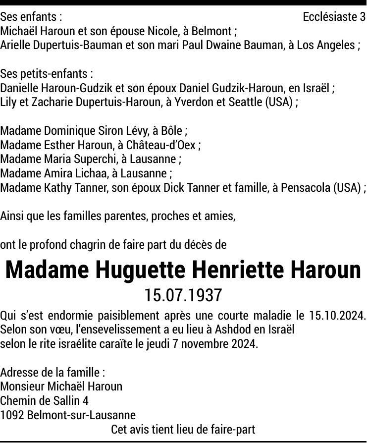 Madame Huguette Henriette HAROUN
