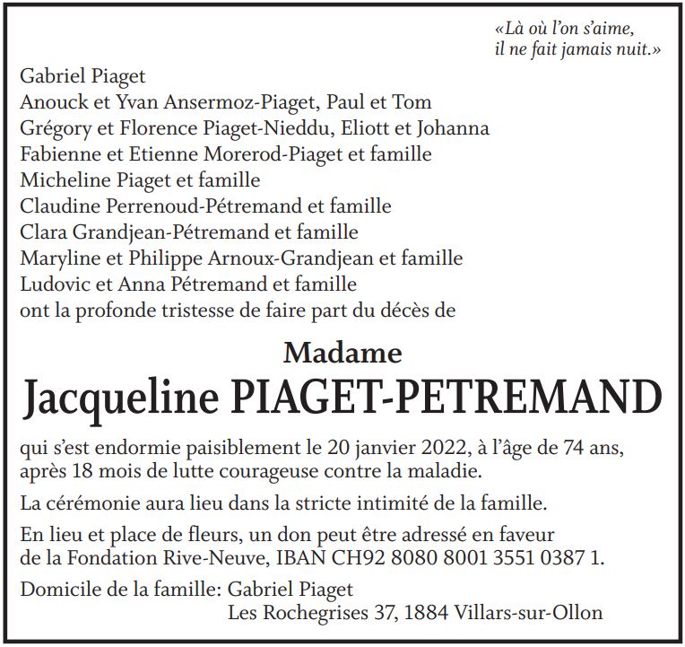 Embedded thumbnail for Madame  Jacqueline PIAGET-PETREMAND  > Galerie > Video or Image