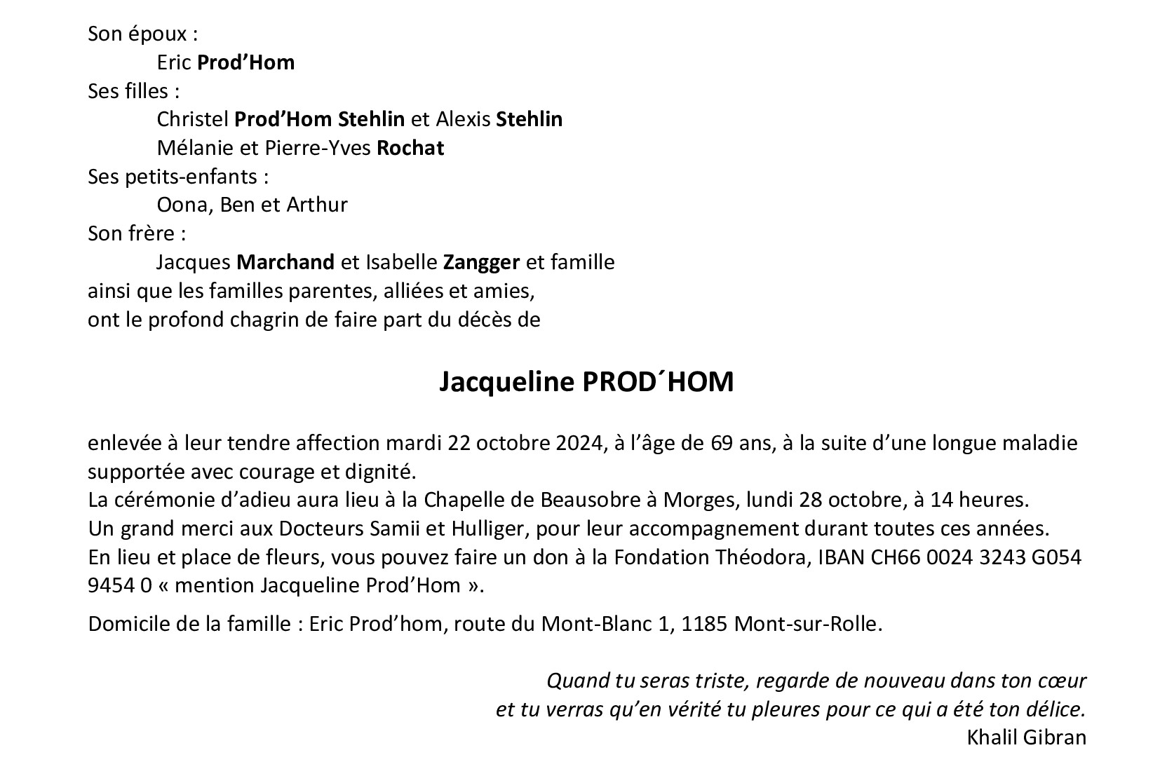 Madame Jacqueline PROD'HOM