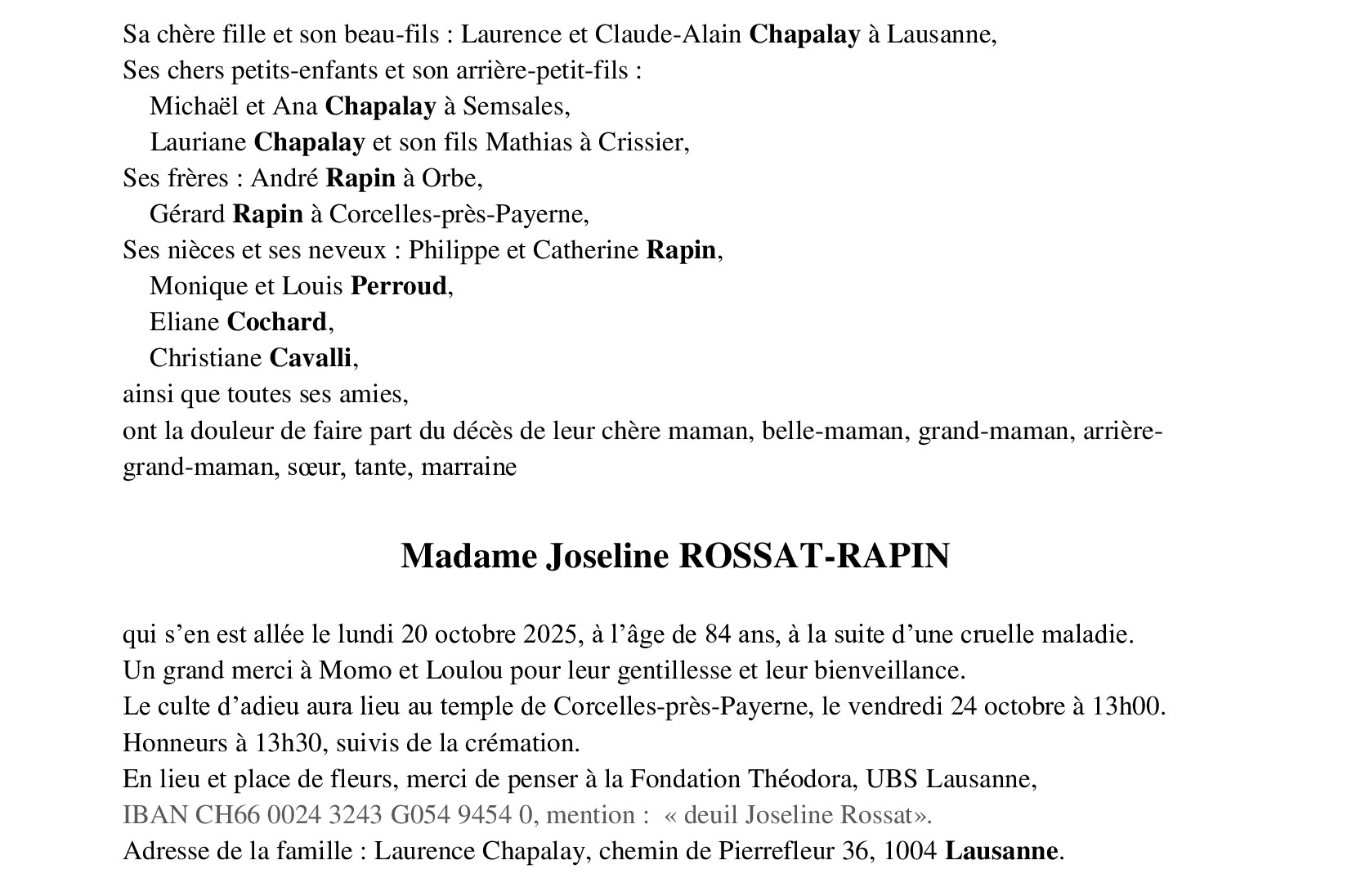 Avis mortuaires / Remerciements
