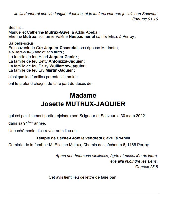 Embedded thumbnail for Madame Josette MUTRUX-JAQUIER > Galerie > Video or Image