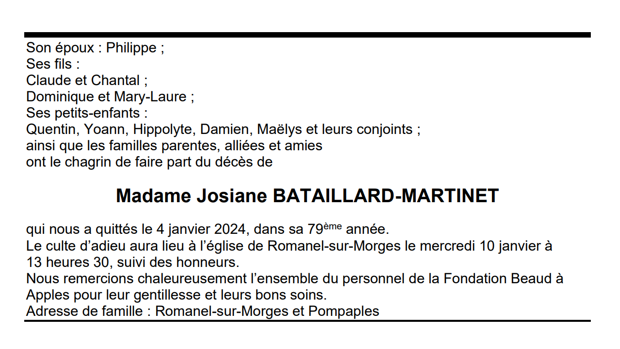 Madame Josiane BATAILLARD-MARTINET