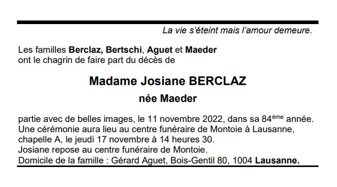 Embedded thumbnail for Madame Josiane BERCLAZ > Galerie > Video or Image