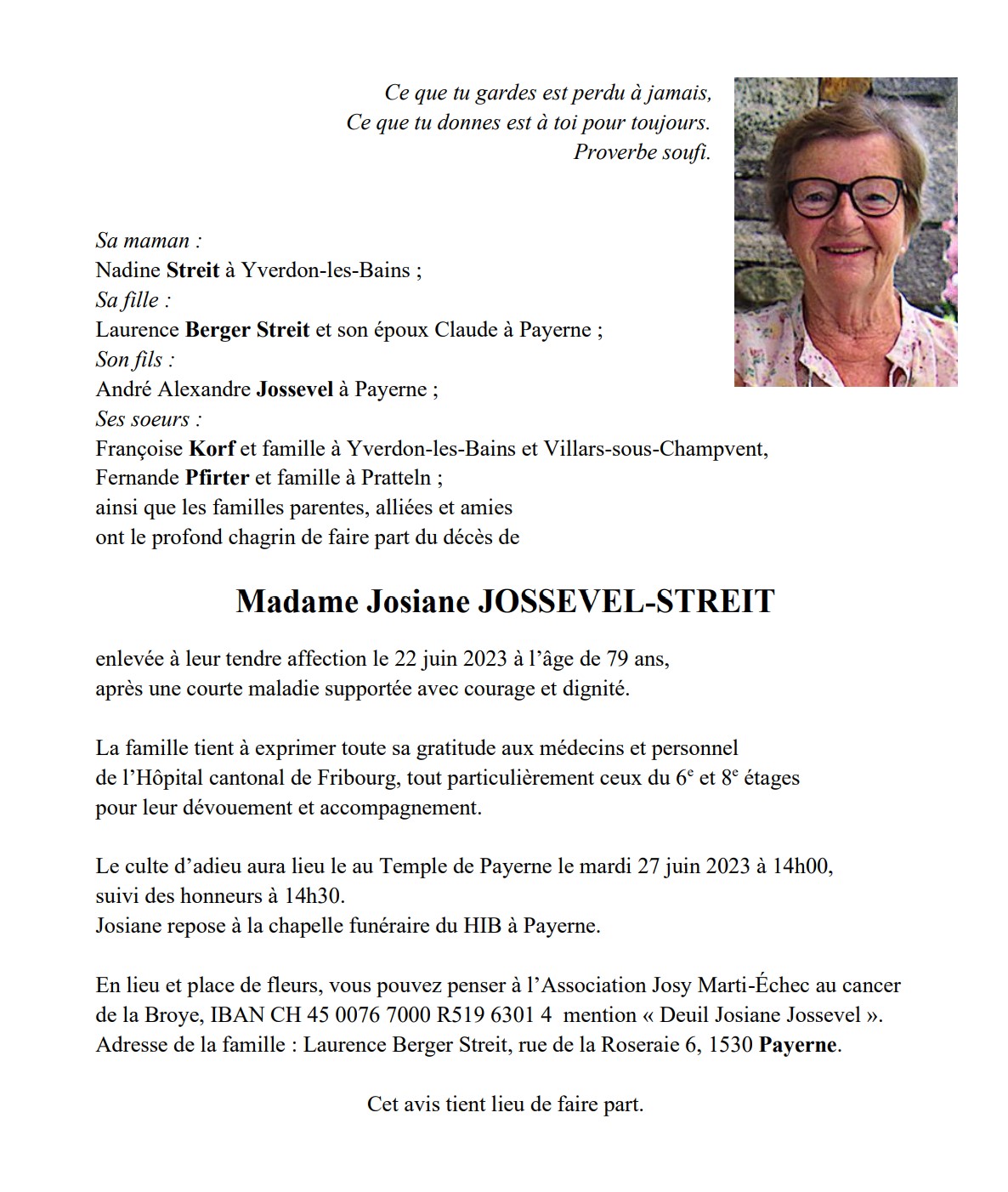 Madame Josiane JOSSEVEL-STREIT
