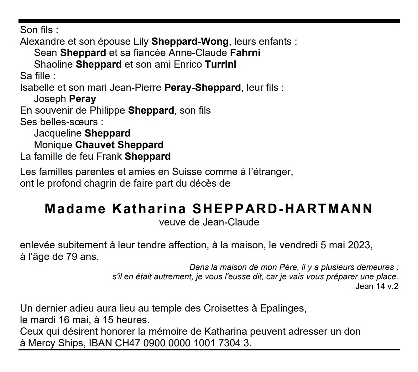 Madame Katharina SHEPPARD-HARTMANN veuve de Jean-Claude