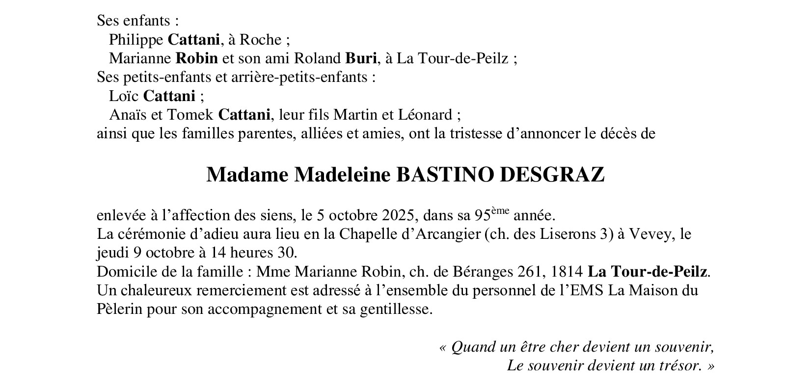 Madame Madeleine DESGRAZ