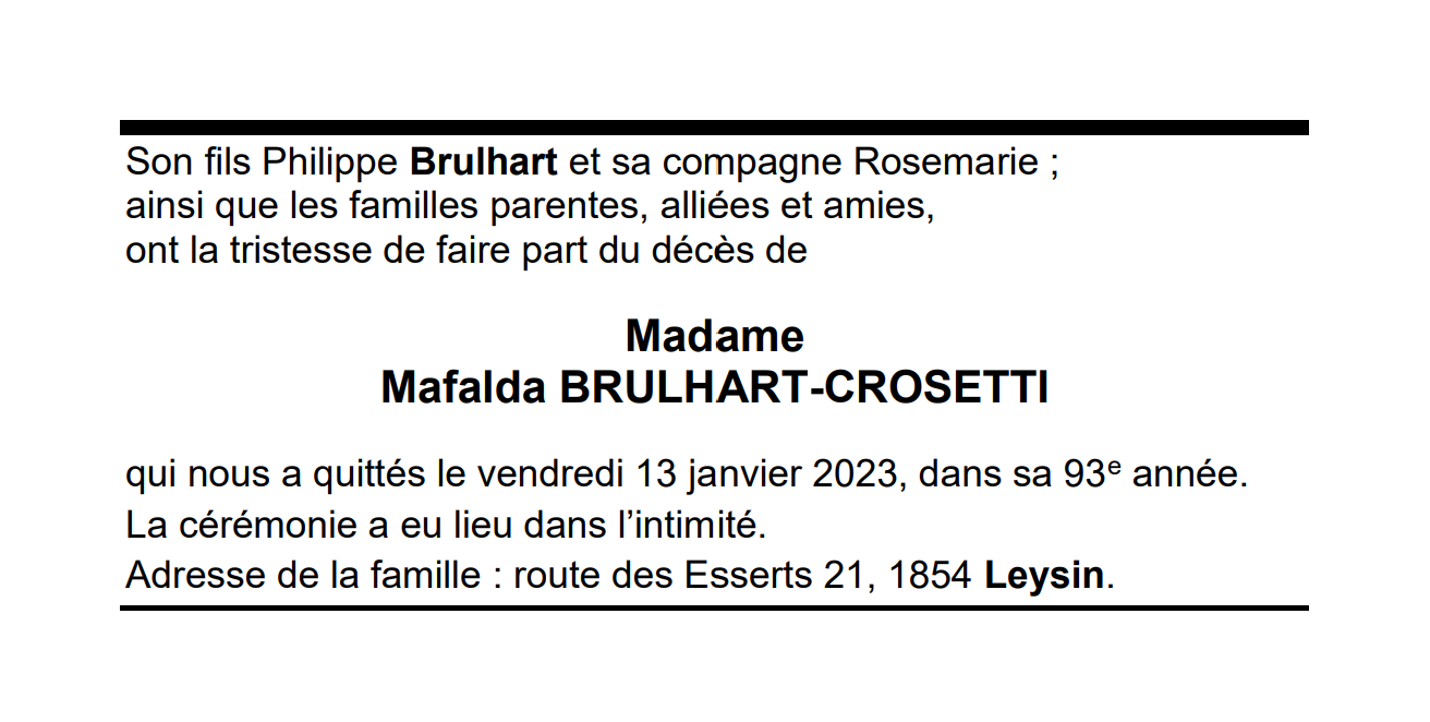 Madame Mafalda BRULHART-CROSETTI