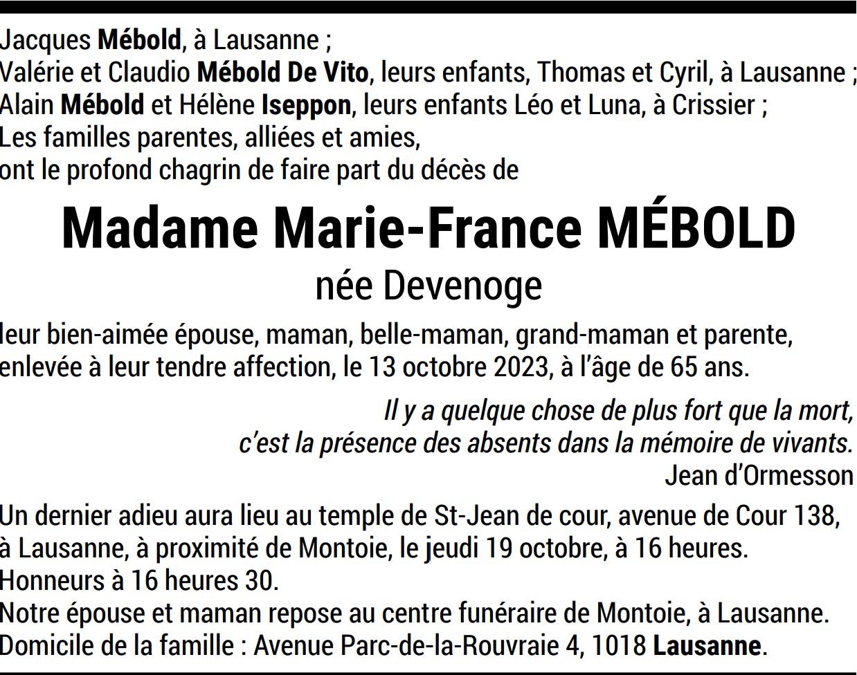 Madame Marie-France MÉBOLD née Devenoge