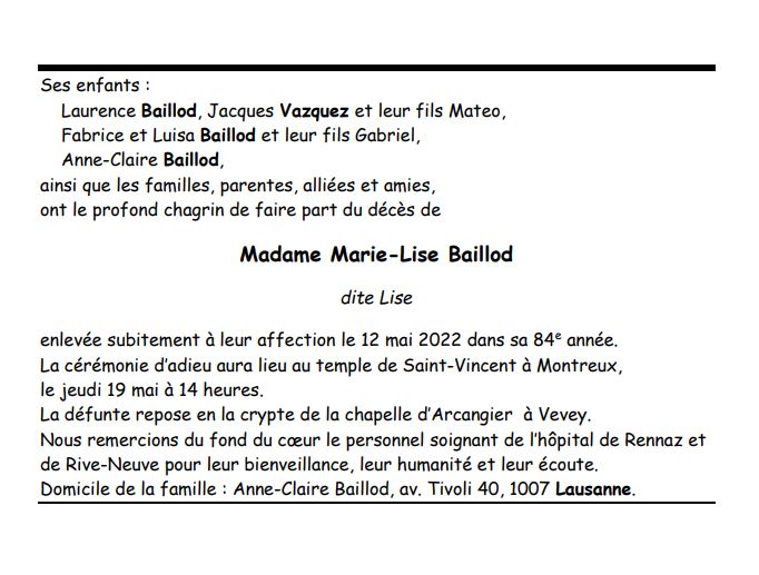 Embedded thumbnail for Madame Marie-Lise Baillod > Galerie > Video or Image
