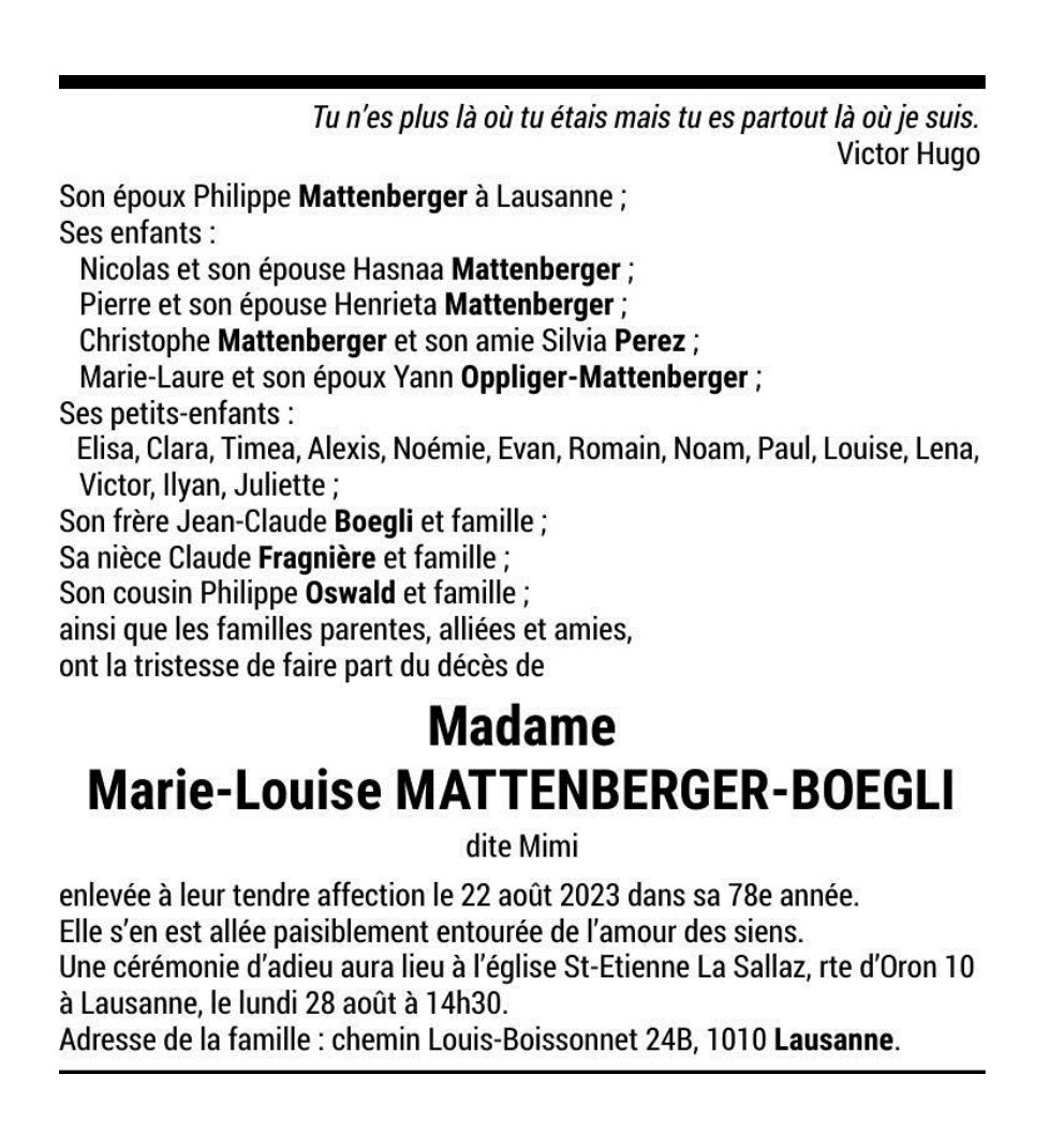 Madame Marie-Louise MATTERBERGER-BOEGLI