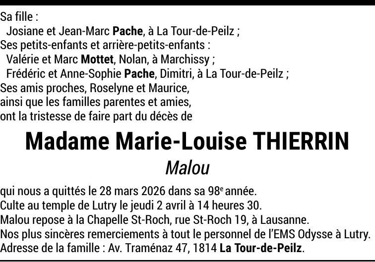 Madame Marie-Louise THIERRIN