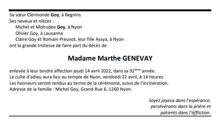 Madame Marthe GENEVAY