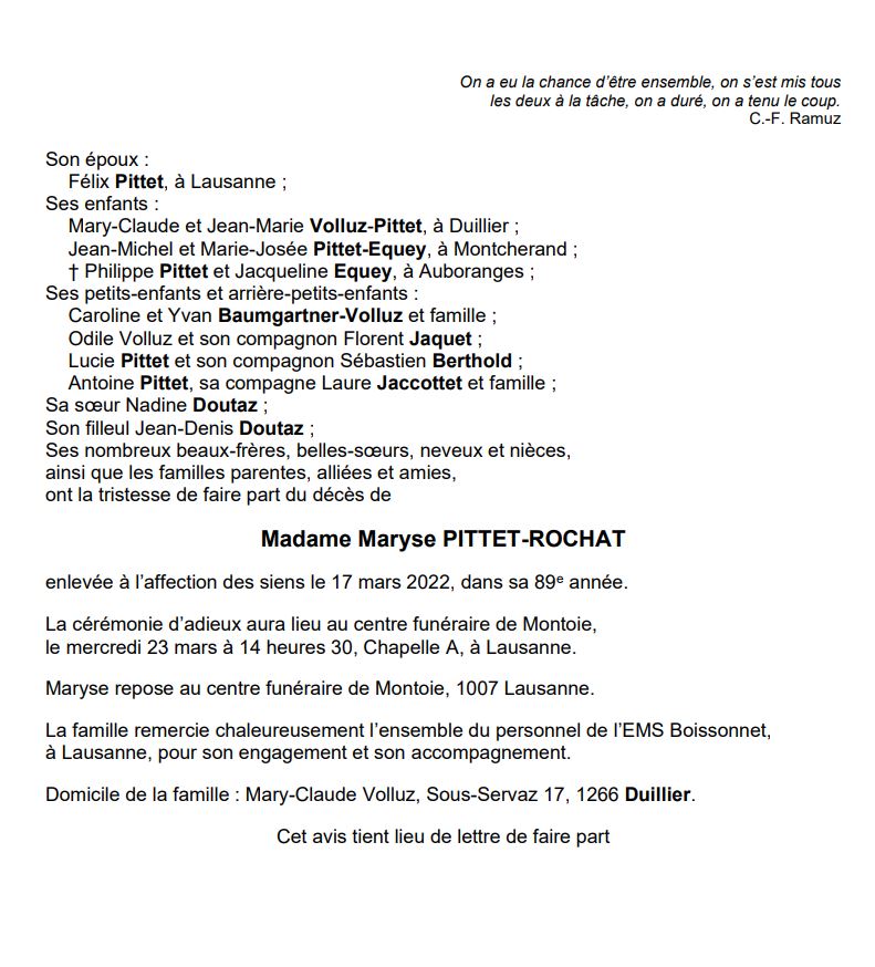 Madame Maryse PITTET-ROCHAT