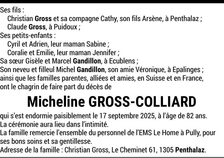 Madame Micheline GROSS-COLLIARD