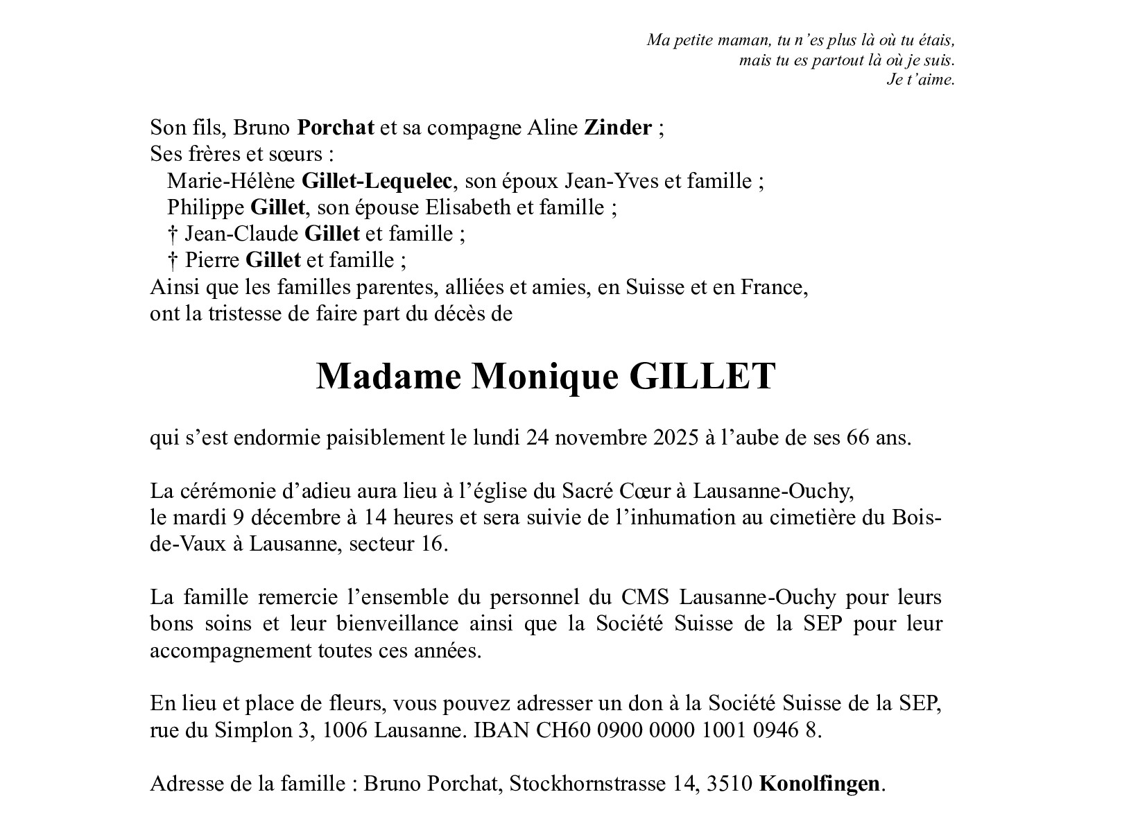 Madame Monique GILLET