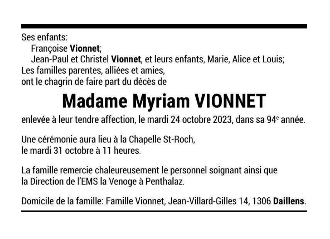 Madame Myriam VIONNET