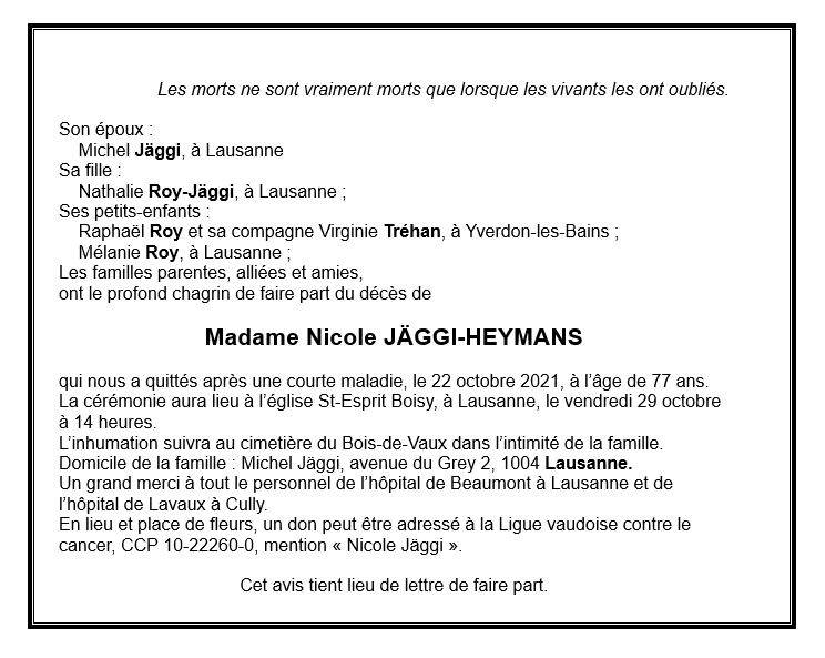Madame Nicole JÄGGI-HEYMANS