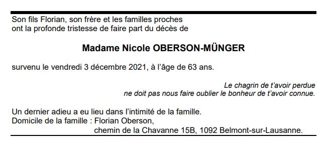 Madame Nicole OBERSON-MÜNGER