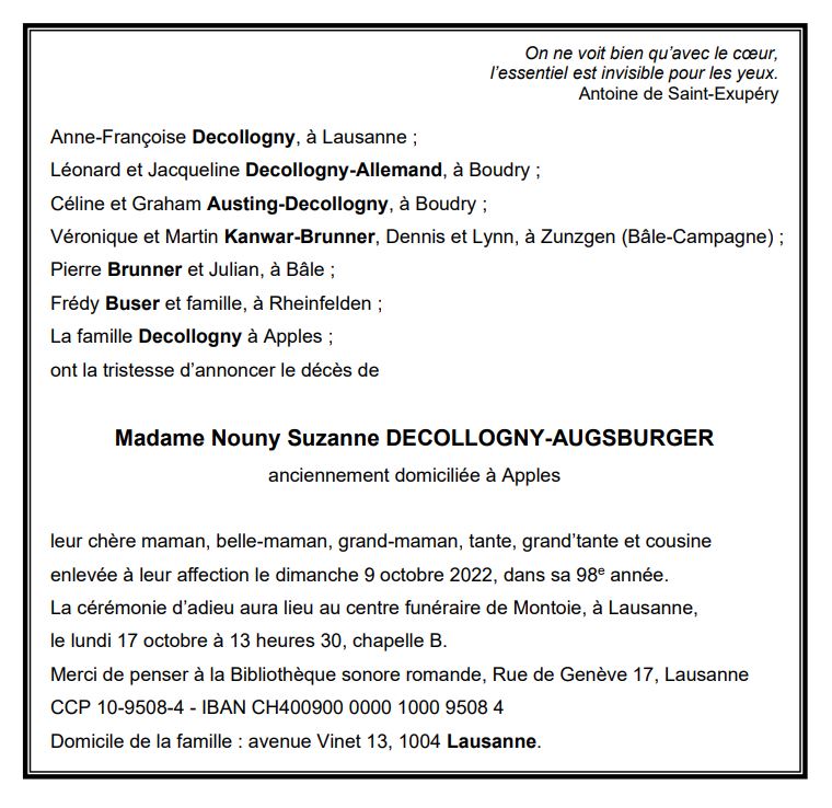 Madame Nouny Suzanne DECOLLOGNY-AUGSBURGER