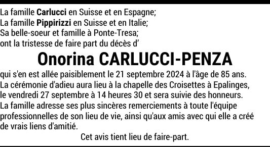 Madame Onorina CARLUCCI-PENZA
