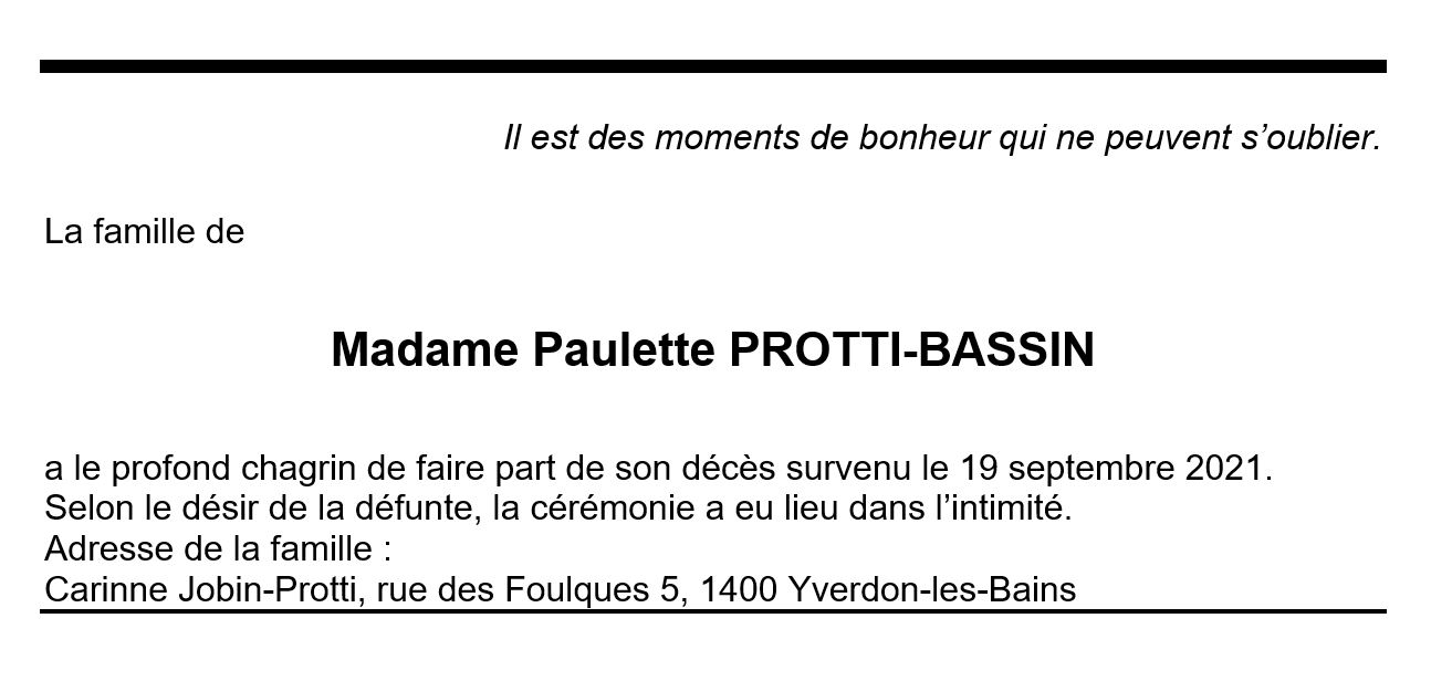 Madame Paulette PROTTI-BASSIN