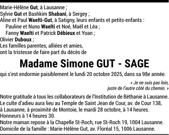 Madame Simone GUT-SAGE
