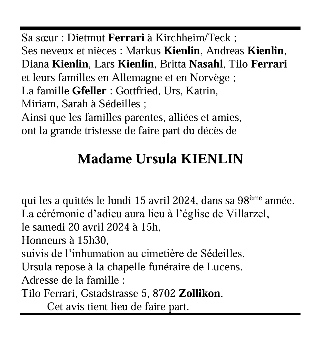 Madame Ursula KIENLIN
