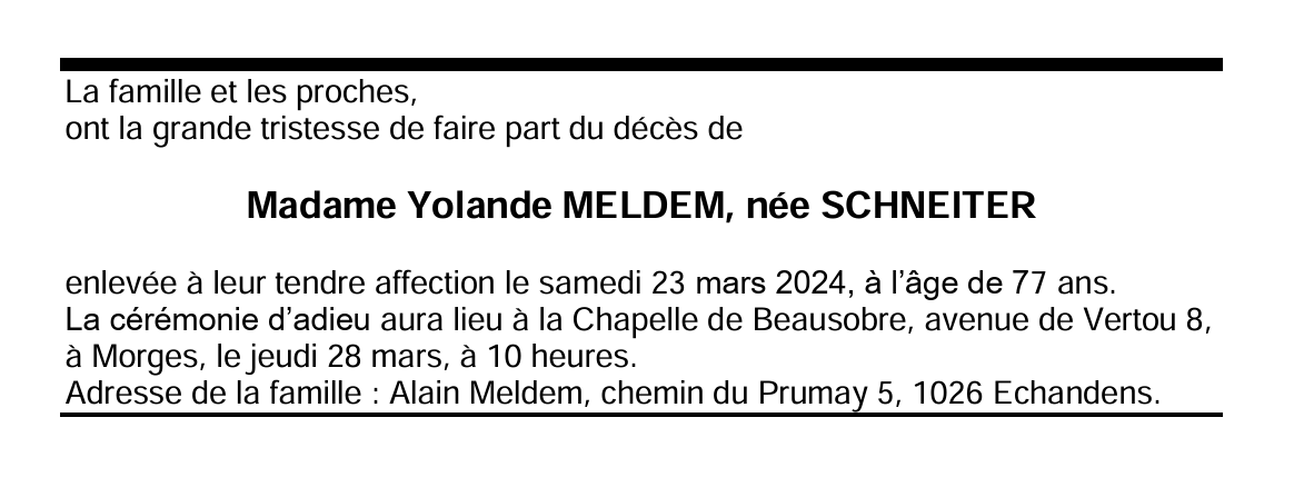 Madame Yolande MELDEM, née SCHNEITER