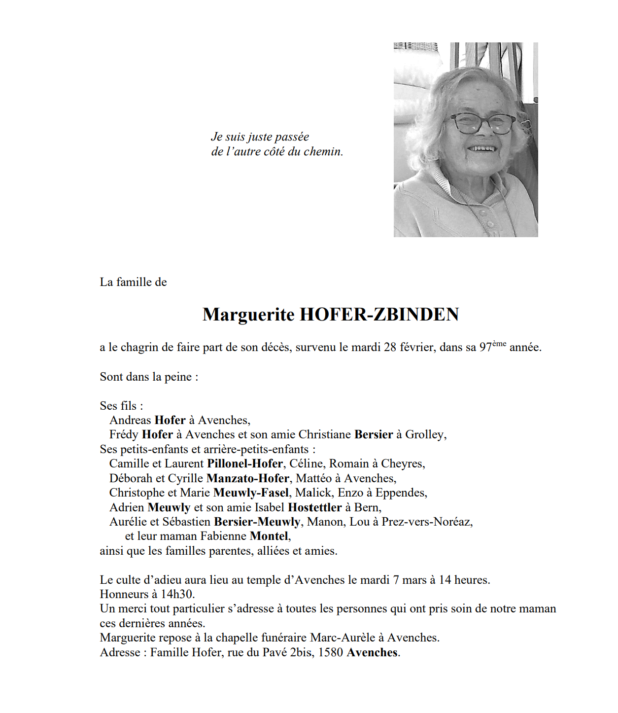 Marguerite HOFER-ZBINDEN