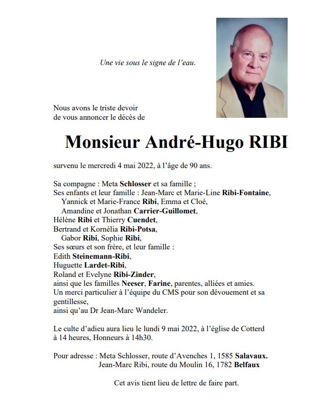 Monsieur André-Hugo RIBI 13 déc. 1931 - 04 mai. 2022 Avis mortuaire PFG Télecharger PDF Partager sur: Galerie PreviousNext PreviousNext